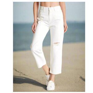 Mih Boyfriend Jeans Womens 27 White Straight Crop High-Rise Distressed Jeanne