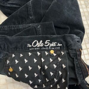 Mih Jeans Black Velvet Mid Rise Slim Leg Jeans