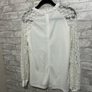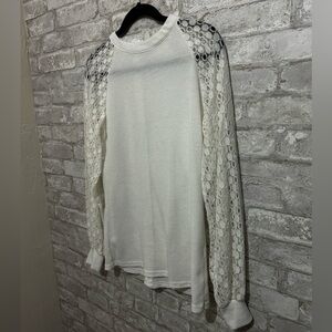 Michell White Long Sleeve Top with Lace Sleeves