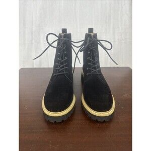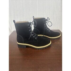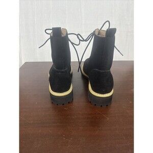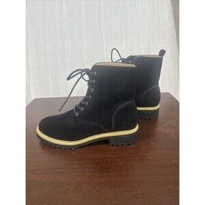 Mi.iM Black Lace Up Combat Style Boots Brushed Velvet Fabric Goth Tactical