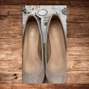 Mi.iM Luna Taupe Faux Suede Leather Pointed Toe Flats with Box, Women's 7.5 EUC