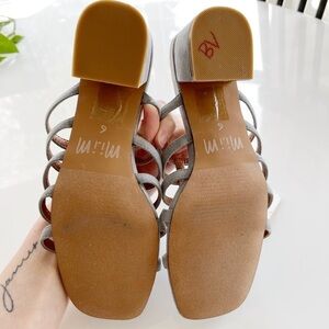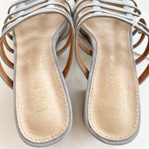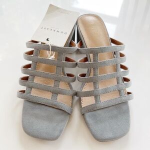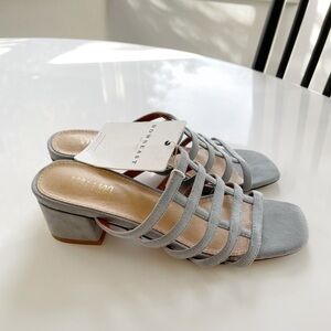 Brand new! Leather Dusty Blue Grid detail Block heel