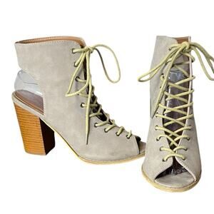 Mi.iM Nikita Cut Out Bootie Lace Up Open Toe Chunky Heel Tan Women’s Size 10