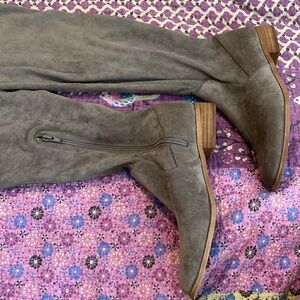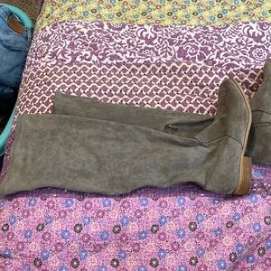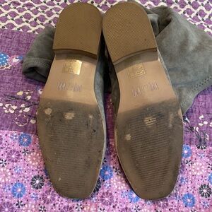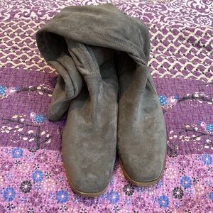 Knee high grey Mi.iM knee high boots, in excellent condition only worn a couple of time with no visible flaws. Material is man made suede stretchy material heels are man made wood. They measured 18” from the heel bed to the top of boot.