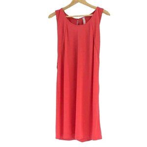 miilla coral pink sleeveless sheath dress. Scoop neck. Hidden side zipper and back button keyhole closure. Excellent pre-owned condition with no stains or tears.