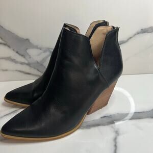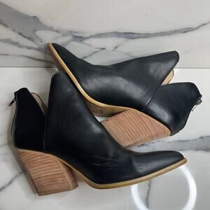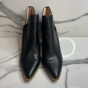 Mi.im | Women's Classic Black Leather Festival Pointed Toe Stack Heel Boots Sz 9