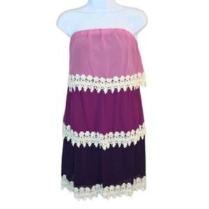 Miin Amethyst Ombré Tiered Crochet Lace Chiffon Strapless Dress S