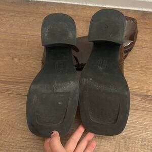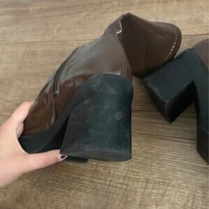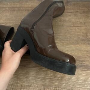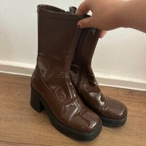 Incredible shiny brown mid-calf heeled chunky platform "noelly" boots by E8 Miista. UK size 6.