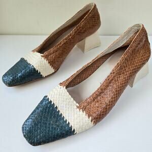 Miista Elvissa Mix Woven Leather Block Heels Pumps Womens Size US 10.5 EU 41