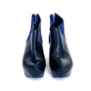 Miista Leather Chunky Platform Bootie Shoes Boots Size 39 Black Blue Steam Punk