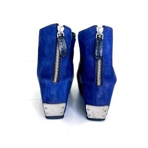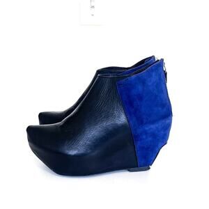 Blue Suede Black Leather Pointed Toe Chunky Platform Wedge Cyber Punk Miista Boots Shoes Booties