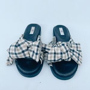 Miista London Valerie Plaid Tartan Bow Sandals Slides Flats Knot 38 Leather 7.5