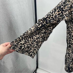 Mika Mindel Blouse Womens Size Medium Black Cream Cheetah Ruffle Fringe Sleeves
