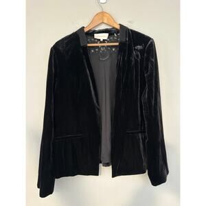 * Mika Mindel Open Front Embroidered Velvet Jacket Womens Size L Black