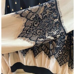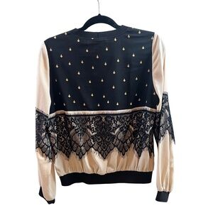 Mika Mindel Taelyn Black & Beige Lace Long Sleeve Blouse size M