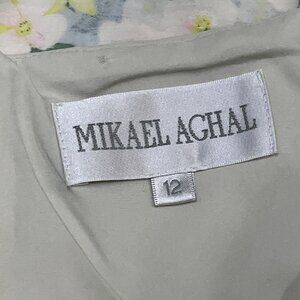 Mikael Aghal Dress Womens 12 Chiffon Floral Lined Ruffle Semi Sheer Midi Fairy