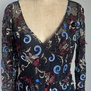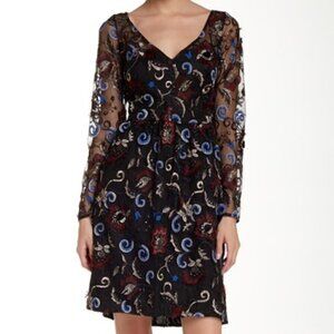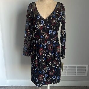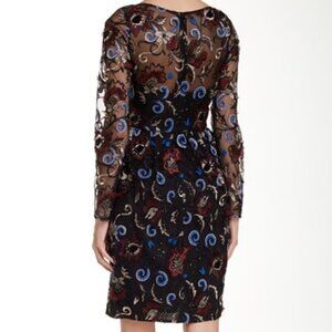 Mikael Aghal Embroidered Long Sleeve V-Neck Cocktail Dress NWT
