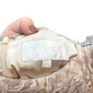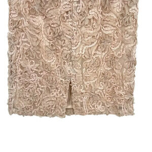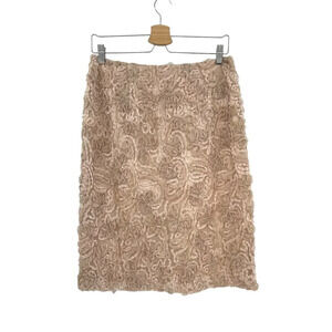 Mikael Aghal Rosette Embroidered Pencil Skirt Cream Beige Blush Size 6