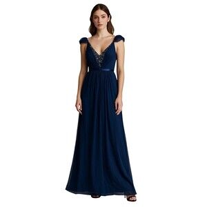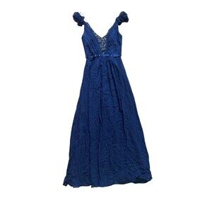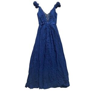 Mikael Aghal Silk Maxi Gown Blue Beaded Prom Formal Event Dress