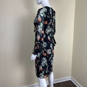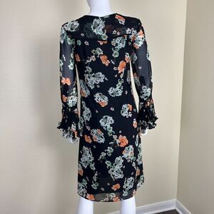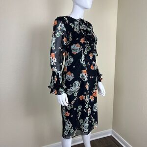 Mikael Aghal Women's Size 2 Floral Ruffle Pleated Sheer Dress Chiffon Victorian