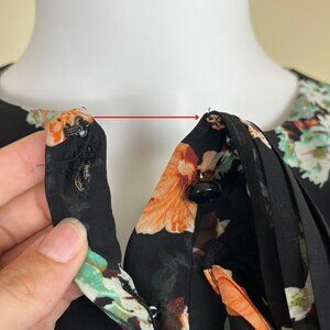 Buttons front closure with ruffle collar snap button clasp (metal loop is missing/does not affect the dress)
