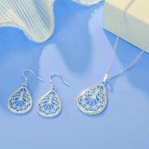 Mikaela Lane Filigree 925 Sterling Silver Teardrop Necklace Earrings Gift Set