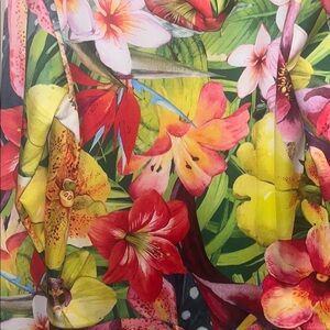 Bright floral hoodie with a mix of colors. Perfect for a bold look. Vacation or travel. Gorgeous bright color jumps off this well made garment. New with tag, from a smoke and pet free home. @mikaela.pabon. Made from recycled packaging. Measures flat front pit to pit is 23” inches and shoulder to hem is 25” inches. So gorgeous in person. Other like posted item sells for $200 with other sellers.