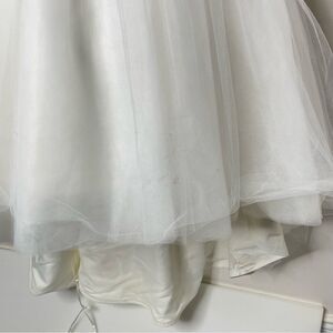 —- *** bridal store floor sample, needs dry cleaning just to refresh it, no major flaws, dust stains on the hem and train, may have light dust stains on the dress, missing care tag, no optional straps or belt-***