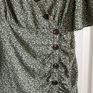 Mikarose Juniper Button Dress Short Flutter Sleeves Green Floral Sz S Peasant