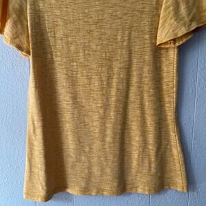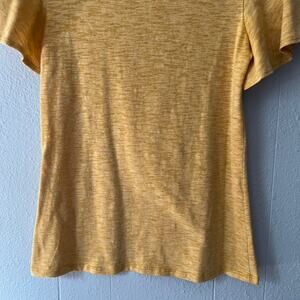 Mikarose women's yellow top. Scoop neck. Short flutter sleeves. Lightweight & breathable. In good used condition. No stains, tears or holes.