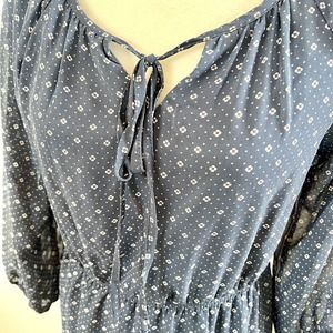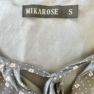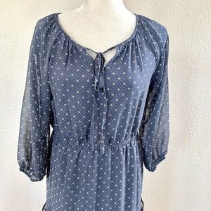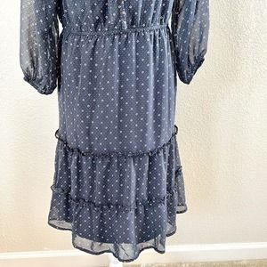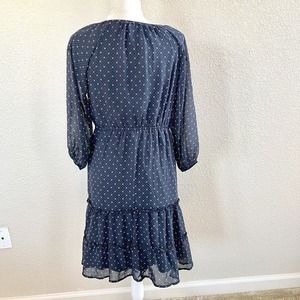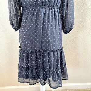 Mikarose Women's Small Navy Blue Polka Dot Floral Sun Dress Puffy Sleeves