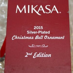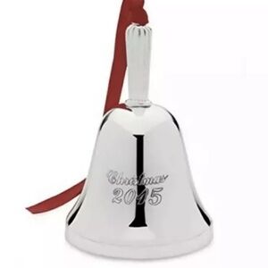 This is the 2nd edition Silver Plated Christmas Bell Ornament, by Mikasa. This bell is crafted from fine silver plate and features the words "Christmas 2015" prominently on the front. The finial of the bell is finished with a fluted design. Comes in a gift box and includes a ribbon for hanging. Silver plated bell ornament measures 3-1/4 inch high x 2-1/2 inch wide.