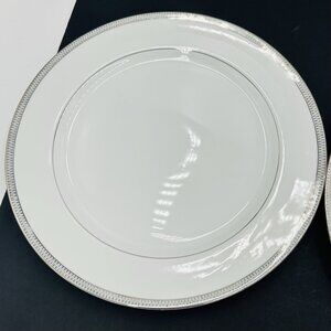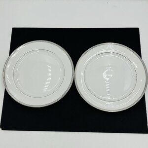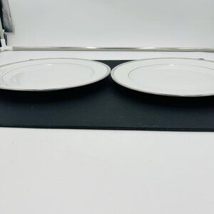 Mikasa 8258 Barclay 10.25" Dinner Plates Set of 2 White Platinum Trim Vintage