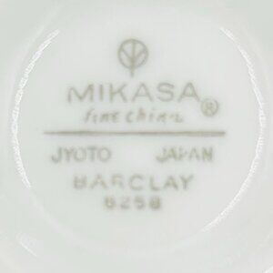 Mikasa 8258 Barclay Fine China Cup and Saucer White Platinum Trim Vintage. This cup/saucer set is in excellent condition, no chips, cracks, or stains.