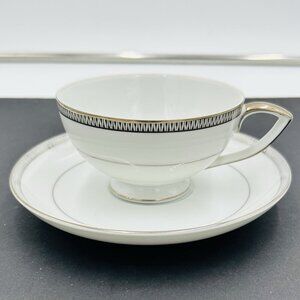 Mikasa 8258 Barclay Fine China Cup and Saucer White Platinum Trim Vintage