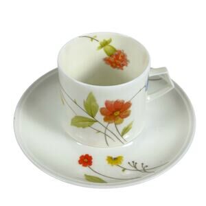 Saucer: 6.25" in diameter. Both the cup and saucer are in excellent condition. Additional sets are available with savings up to 20% if purchasing multiple cup and saucer sets. Whether you're a collector of fine china or simply looking to add a touch of sophistication to your home, this flat cup and saucer set makes a great addition to your Mikasa Bone China 'Just Flowers' dinnerware. # 2762