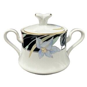 Mikasa Charisma Black Cream and Sugar Bowl with Lid Set Made in Japan L9050