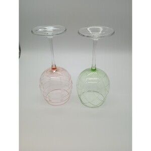 Mikasa Cheers Etched Wine Glasses Set Of 2 Pink Green 8.5" Balloon Red