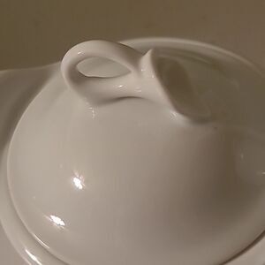 Beautiful white ceramic creamer and sugar set. Perfect for any table setting.