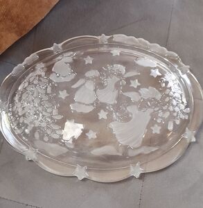 Elegant clear crystal dish with star designs. Perfect for decor or serving.