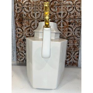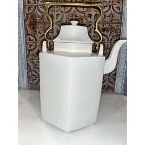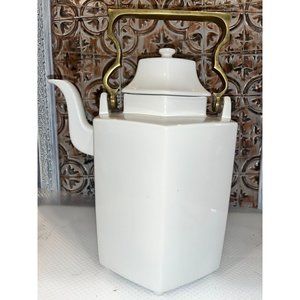 Mikasa Continental White Hexagon Shaped Tea Pot Brass Handle Vintage