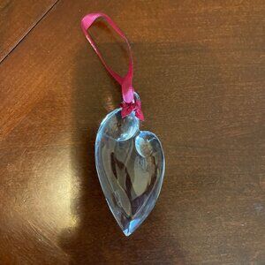 This 3D Mikasa crystal ornament portrays Madonna and Child with a red ribbon for hanging. Packaged in its original box, it makes a meaningful decoration.