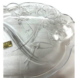 Mikasa Crystal Christmas Holiday Oval Platter With Embossed Holly & Bell Design