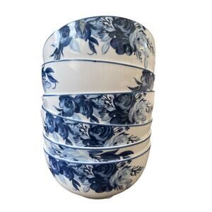 Mikasa Darcy Blue & White Floral Bone China 4.5" Fruit Dessert Bowls