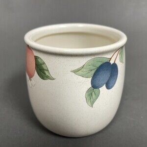 Mikasa Country Classics Fruit Panorama Tea Canister Container without Lid DC014 Bottom states: "Oven to table to dishwasher, safe for microwave oven." Condition: This canister is in very good condition. There are no chips, cracks or crazing. Does not have lid. This canister is 3 3/4" high. We try our best to describe the items accurately, so you know what you are considering buying. If you need more information or would like other pictures, please send us a message. We will be happy to help you.