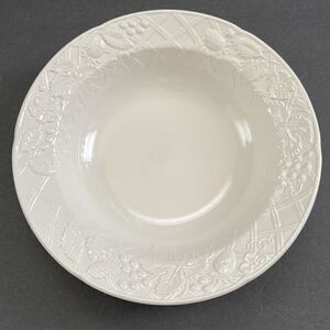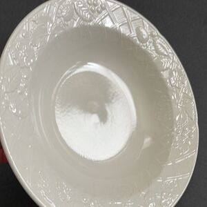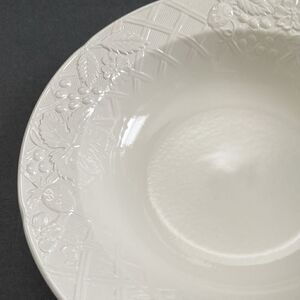 Raised White Flowers,Strawberries, Berries, Basketweave pattern on Rim