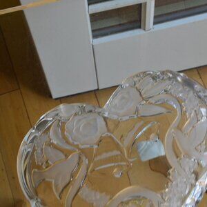 Mikasa Etched Glass Heart Wedding Anniversary Dish Bowl Bells Doves Rose Crystal