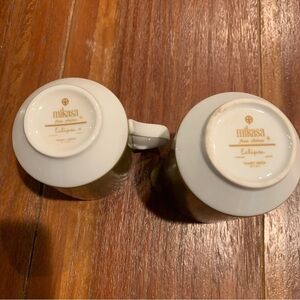 Mikasa Fine China Eclipse Tawny Green Narumi Japan Creamer and Coffee Cup Vintage. Great preowned vintage condition.