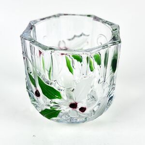 Mikasa Glass Votive Candle embossed Red green Holly berries Christmas home decor