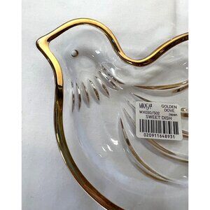 Crafted with precision, this Mikasa Golden Dove Crystal Sweet Dish adds sophistication to any table setting. Its elegant dove shape and gold accents highlight its exquisite craftsmanship. Use it as a decorative piece or for serving sweets and treats. Made in Japan, ensuring quality and attention to detail.